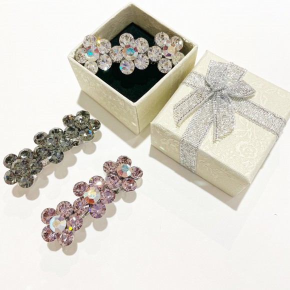 กิ๊บติดผมลายดอกไม้สุดน่ารักพร้อมอัญมณีระยิบระยับขนาดใหญ่ (*´ω`*)